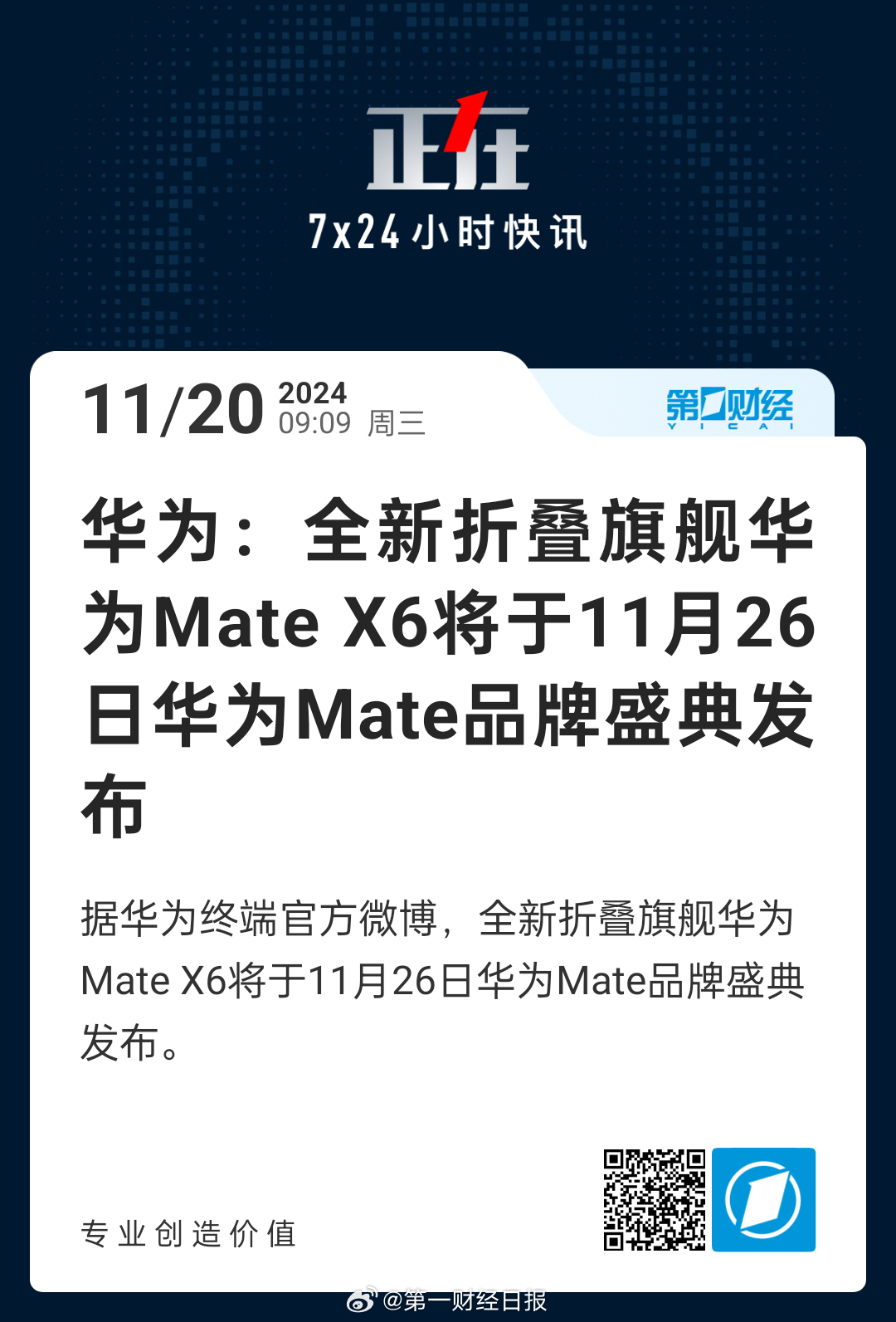 华为手机最新版发布时间